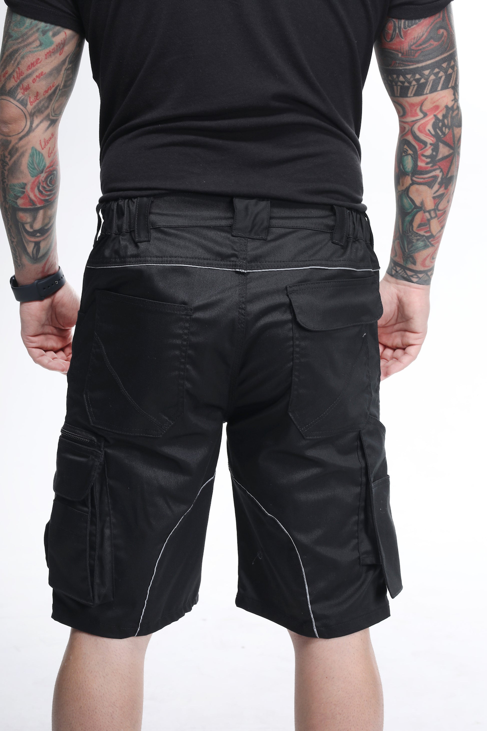 Die Arbeitshose Stretch kurz Schwarz überzeugt durch Elastizität, Funktionalität und modernen Look. Der ergonomische Schnitt mit Stretch-Bund sorgt für maximale Bewegungsfreiheit und hohen Tragekomfort – ideal für warme Arbeitstage oder den Einsatz in Innenräumen.